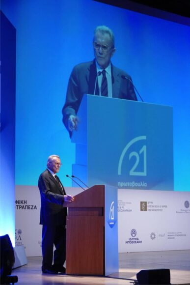 Χαιρετισμούς απηύθυναν ο Αντιπρόεδρος της Κυβέρνησης Κωστής Χατζηδάκης και, εκ μέρους της Πρωτοβουλίας 21, ο πρόεδρος του Ιδρύματος Ωνάση, Αντώνης Παπαδημητρίου, η πρόεδρος του Ιδρύματος Αθανάσιος Κ. Λασκαρίδης, Εύη Λαζού-Λασκαρίδη και ο Σύμβουλος στην Εθνική Τράπεζα και Συντονιστής της Πρωτοβουλίας 21, Ιωάννης Μάνος.